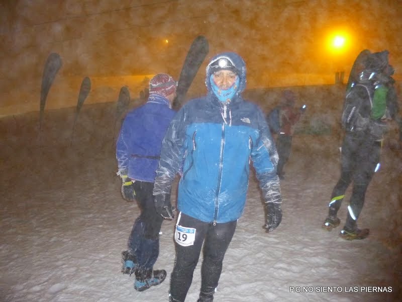 A medida que transcurría la carrera y más altura, las condiciones climáticas eran peores con vientos racheados muy fuertes, que mientras subíamos lo llevábamos de espalda , pero a la hora de bajar nos daba de pleno en la cara siendo muy dificultoso el poder ver, además teníamos que tener la precaución de ir clavando los talones bajando debido a la excesiva pendiente, que hacía que las piernas fueran más rápidas que el cuerpo con el peligro de caer.